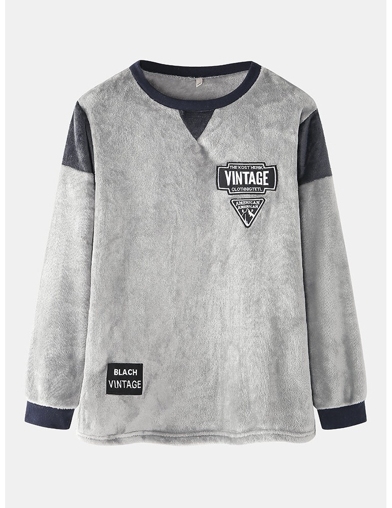 Mens Graphics Flannel Patchwork Sweatshirt Thicken Jogger Pants Home Pajama Set
