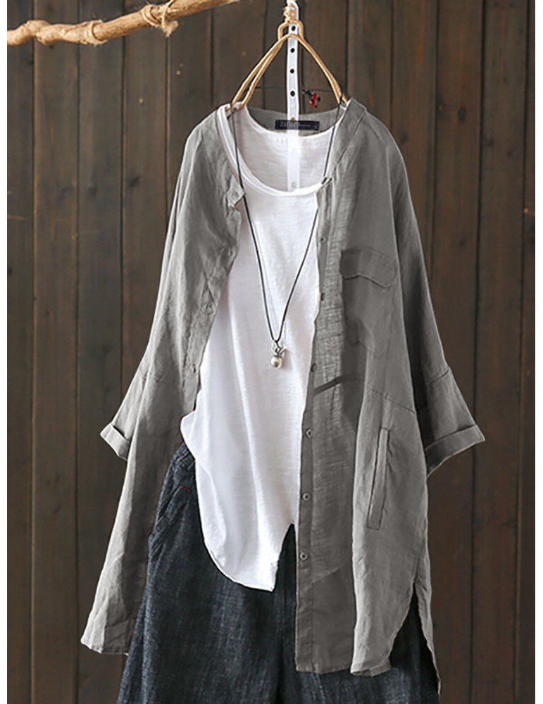S-5XL Women Long Sleeve Button Down Cotton Asymmetric Vintage Blouse